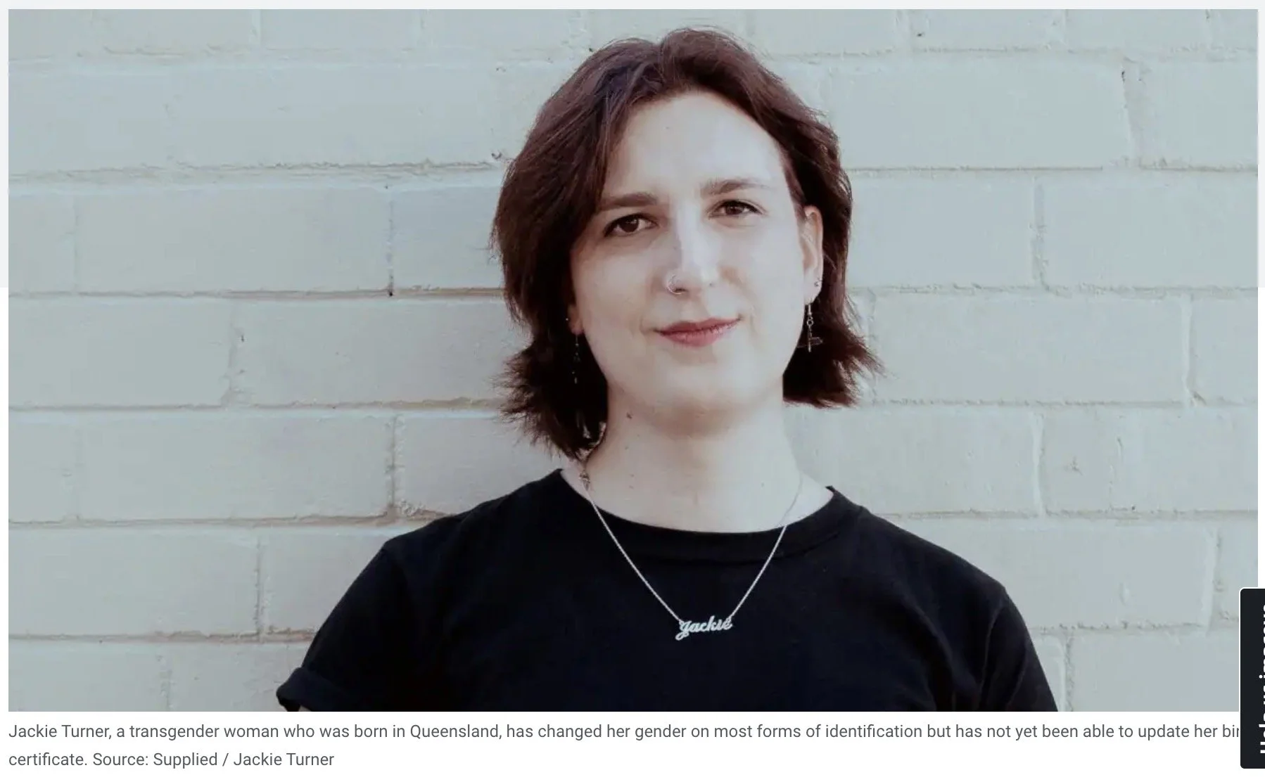 Jackie Turner, Equality Australia's star birth certificate campaigner, has told SBS News that their birth certificate has been "a source of anxiety, [and] confusion."